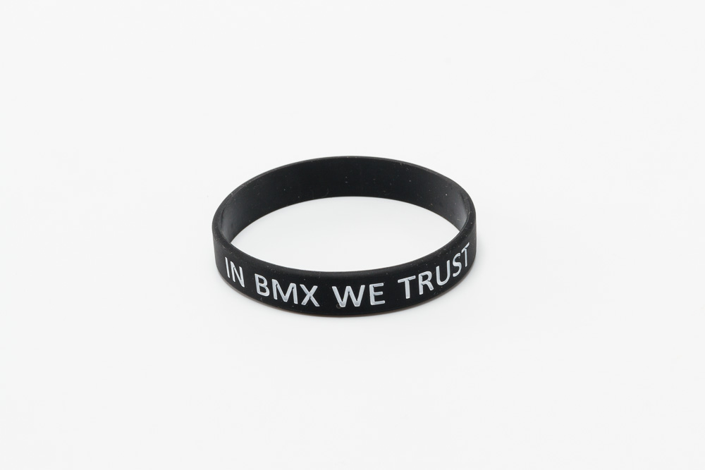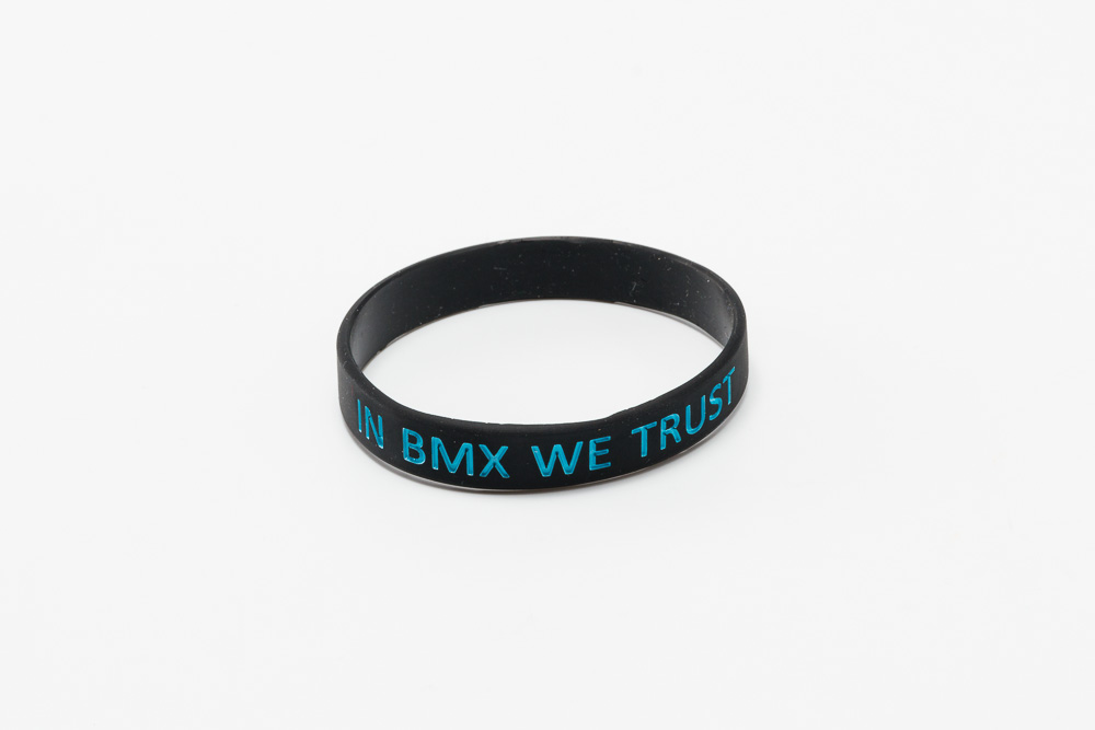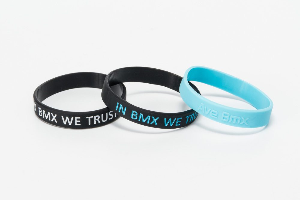 Silikonowa opaska na rękę Wytłoczone logo Ave Bmx oraz napis IN Bmx WE TRUST Kolor niebieski Rozmiar uniwersalny