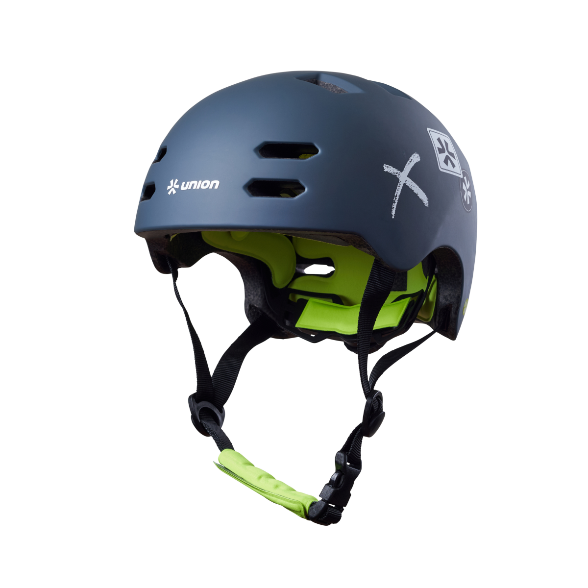 Kask posiada regulowany pasek, zapinany na klamrę.