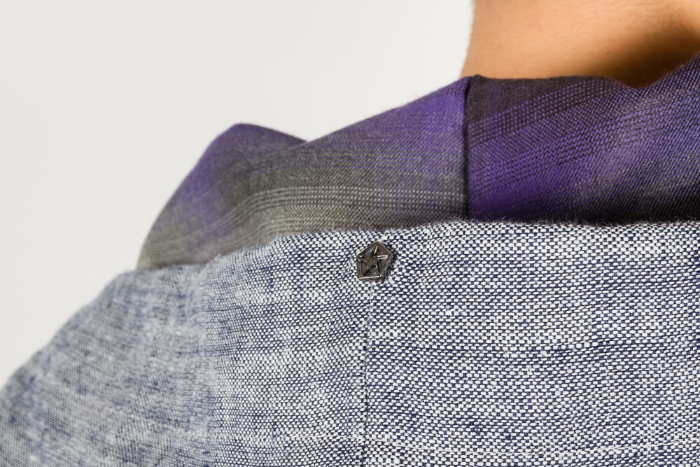 - metalowy pin na kapturze